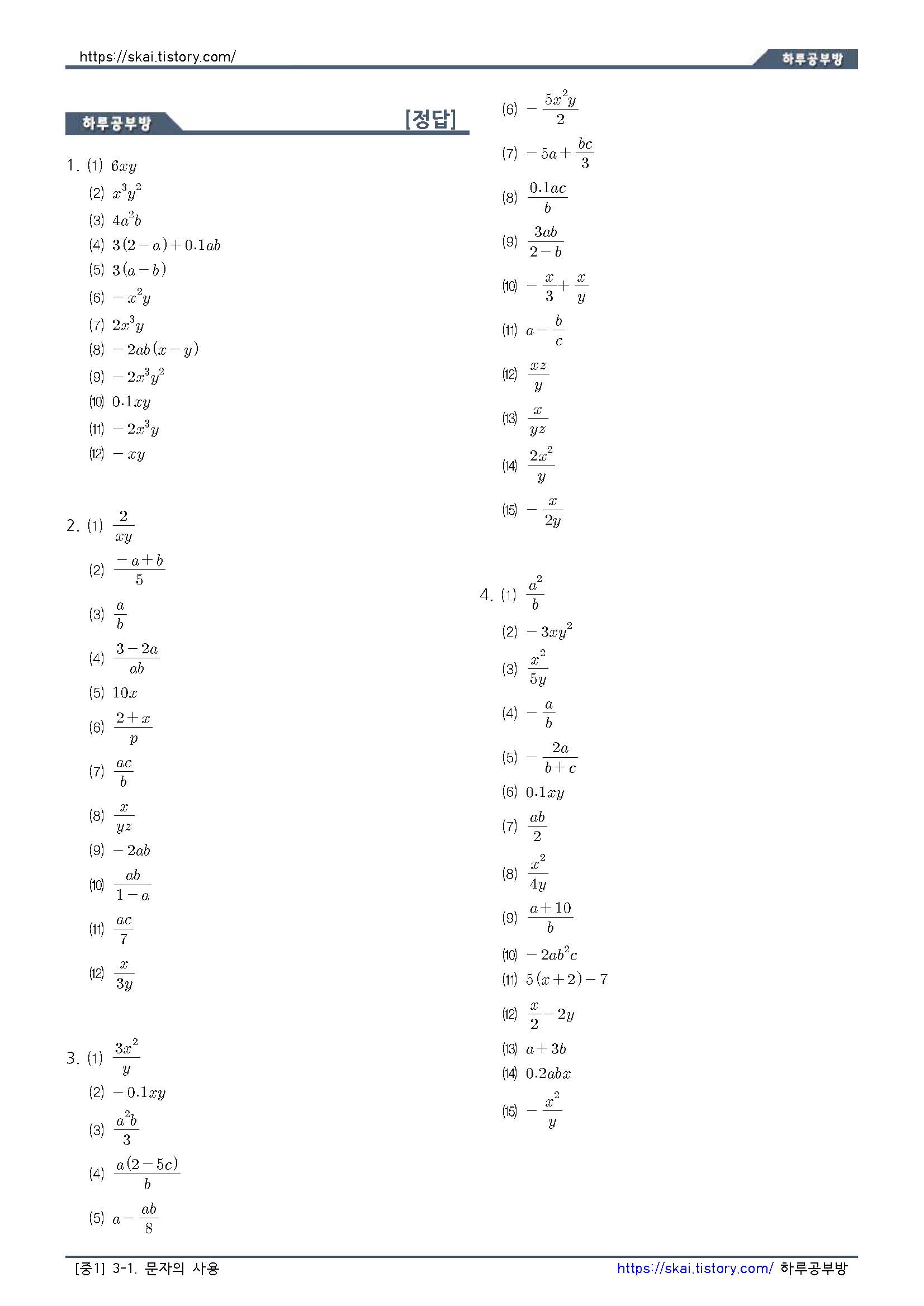 [연산학습지] Ⅲ.문자와 식 1.문자의 사용