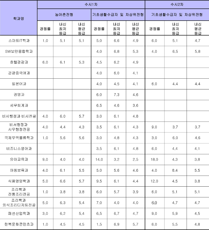 ※ 농어촌전형은 수시1차에서 선발함